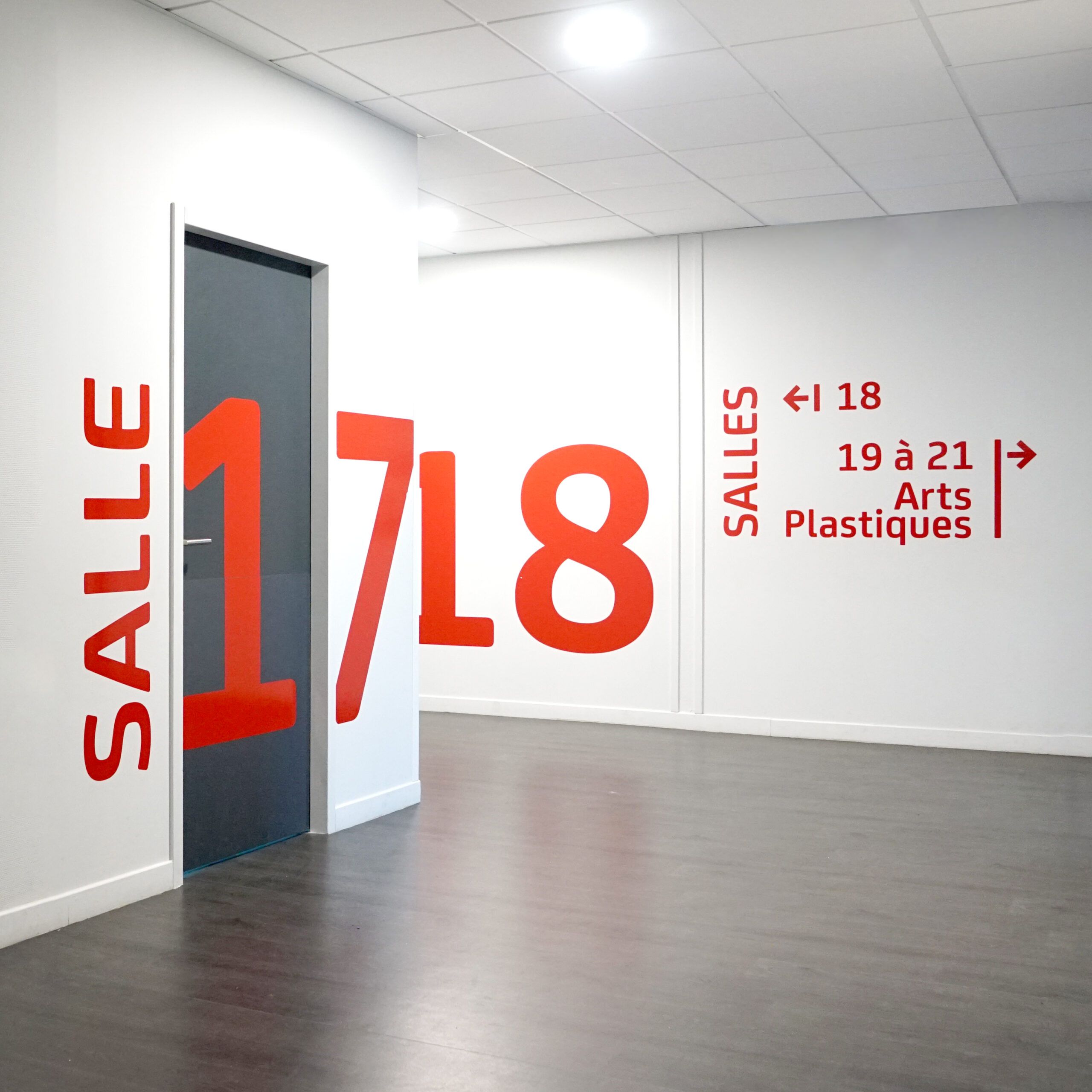 Notre gamme Sticker Mural opaque découpé permet de diriger vers un espace, ou une fonctionnalité dans votre bâtiment.